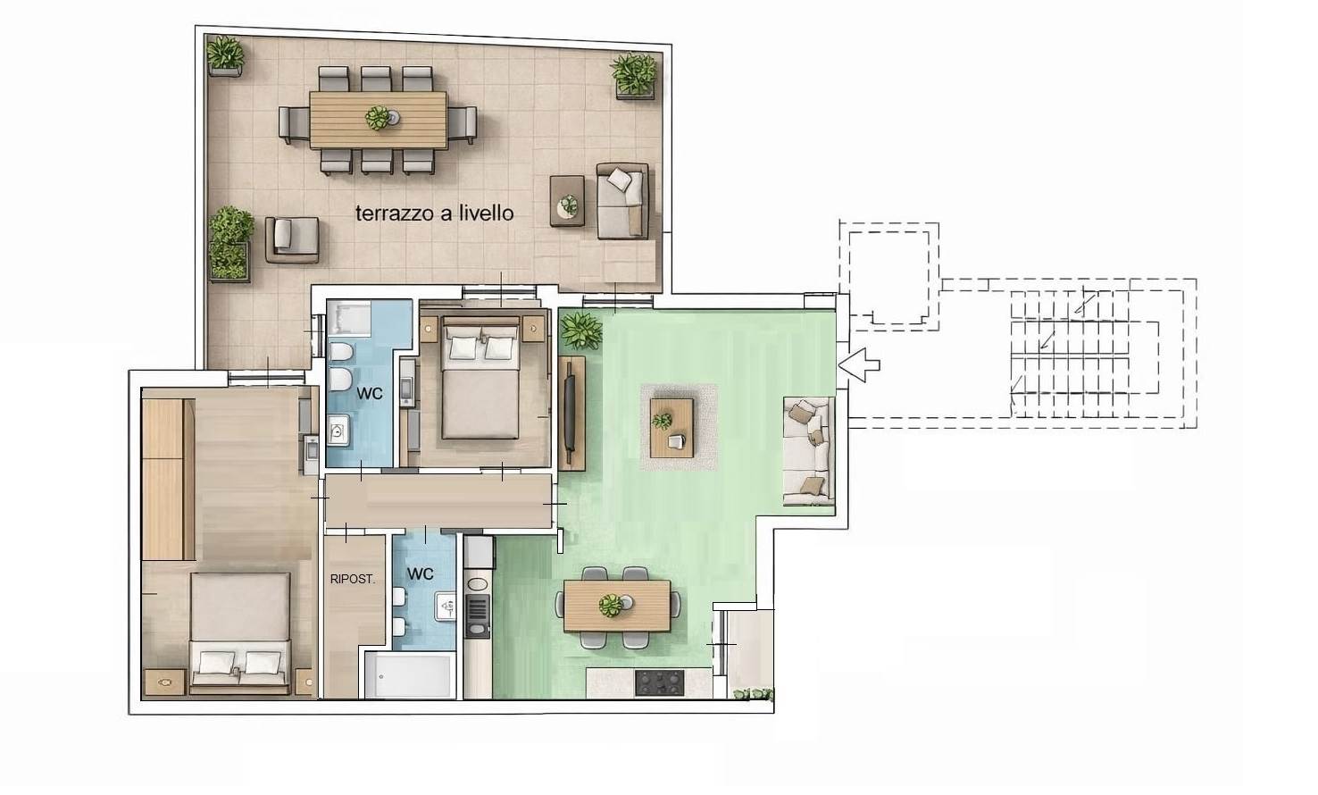 In zona Via Bari, proponiamo in vendita un appartamento sito al piano rialzato di un complesso edificato nel 2007. L'immobile è composto da una comoda zona giorno a vista, avente accesso al terrazzino a livello, angolo cottura riservato e dotato di balconcino con affaccio interno, disimpegno che conduce alla zona notte composta da camera singola con finestrone e spaziosa camera matrimoniale anch'essa con finestrone ed entrambe aventi accesso al terrazzino a livello . Sono presenti ben due servizi di cui uno con vasca e l'altro con doccia e dotato di attacchi lavatrice ed un comodo ripostiglio . Lo stato generale dell'appartamento è buono, necessita di qualche intervento di ripristino ed è pronto e libero subito per poter essere personalizzato secondo le proprie esigenze. E' dotato di videocitofono, avvolgibili elettriche e impianto di allarme e la pavimentazione è in parquet. La proprietà è completata da un comodo box auto. L'accesso allo stabile e all'appartamento oggetto di vendita è adeguato anche a chi ha difficoltà motorie data l'assenza di barriere architettoniche.